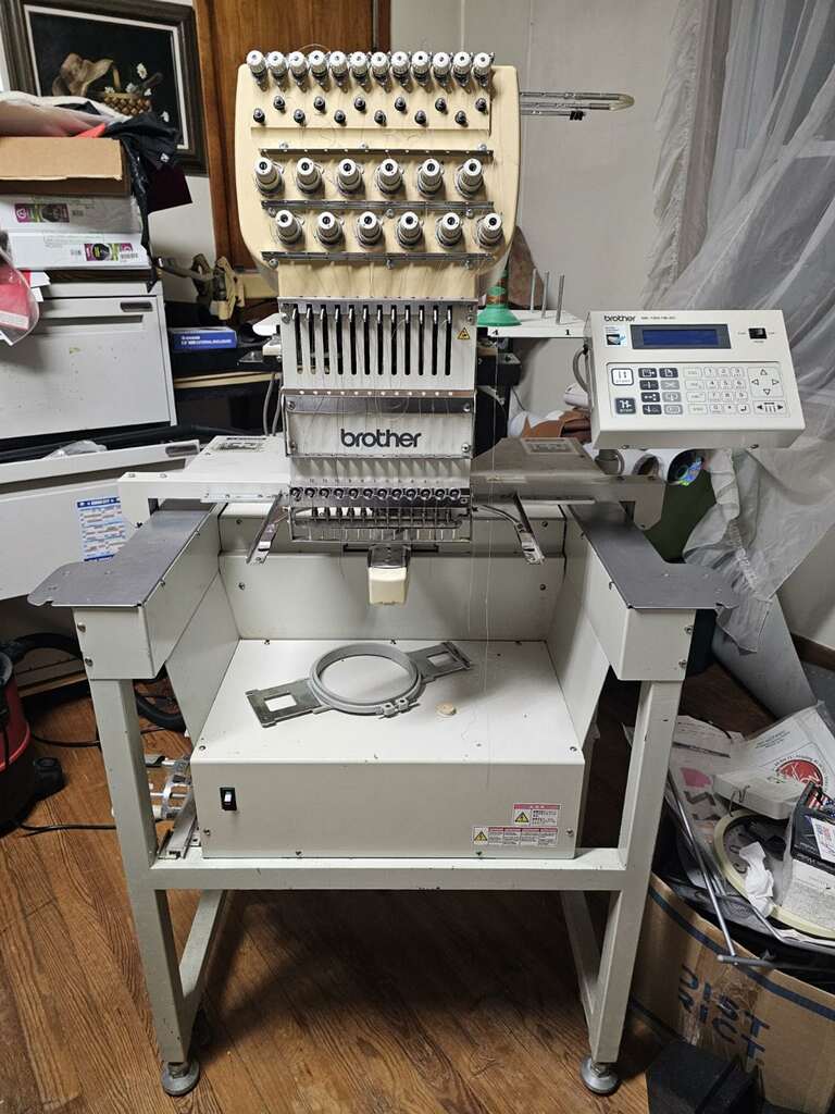 Brother Single Head, BE-120-1B-AC- Needs an update on USB Reader, Currently Floppy Disk, Rund Great, Includes Frames and Manual.